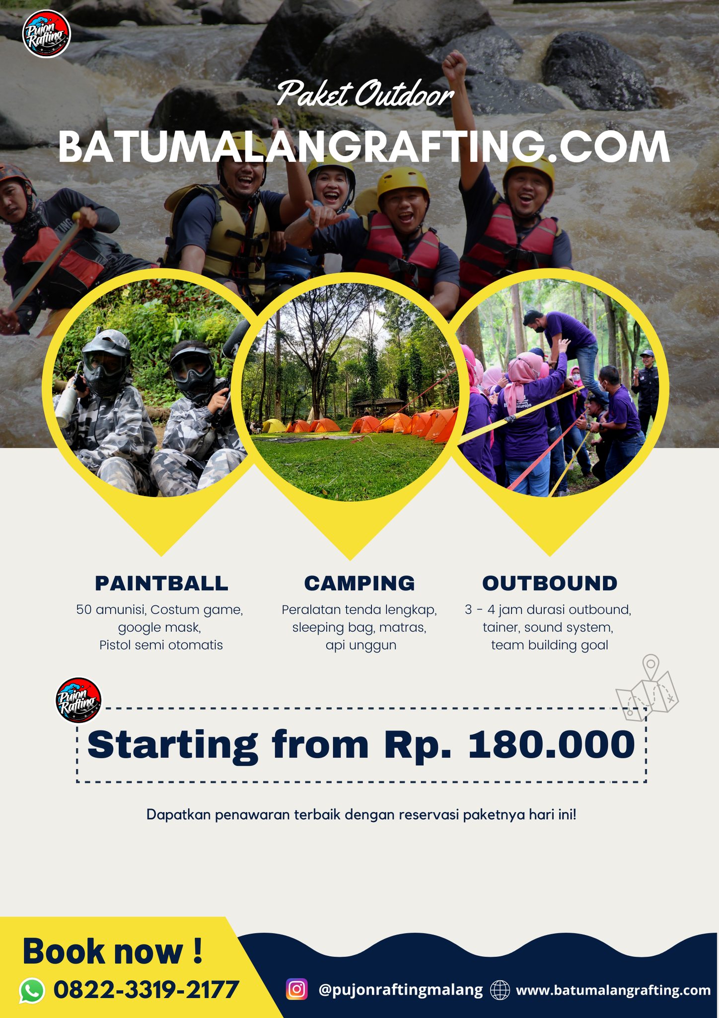 Dengan harga dan pelayanan terbaik, juga sangat berpengalaman dalam dunia arung jeram dan Outbound di kota Batu Malang